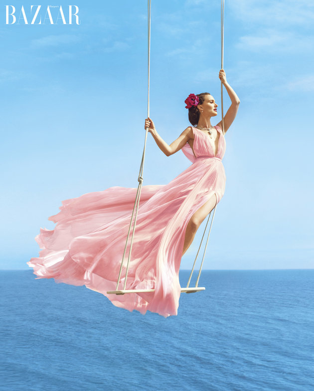 “黑天鹅”女演员娜塔莉·波特曼头戴硕大的花环,身穿粉色Prada裙装,并佩戴宝格丽(Bulgari)的耳环和海瑞·温斯顿(Harry Winston)的手环和戒指出现在了时尚杂志《时尚芭莎》八月的期刊封面。