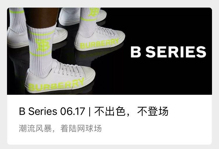 以Burberry为例,其每个月上新的B系列限定产品就以微信为主要阵地,该品牌在此前界面时尚的采访中不止一次提到,借助drop模式和线上购买的便利性,B系列产品经常在很短的时间内被抢购一空。