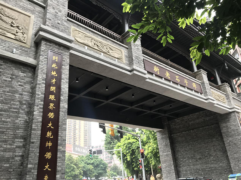 弹子石老街将原址复建,留下许多山城老街的风貌。从上到下约80米的落差代表着山城独特的地貌,和梯坎并行的电梯为游客们提供了方便。一路下来,各式旧院大门错落有致,沿路建筑透出古味,漫步其中能体会到热闹街市之外的宁静。