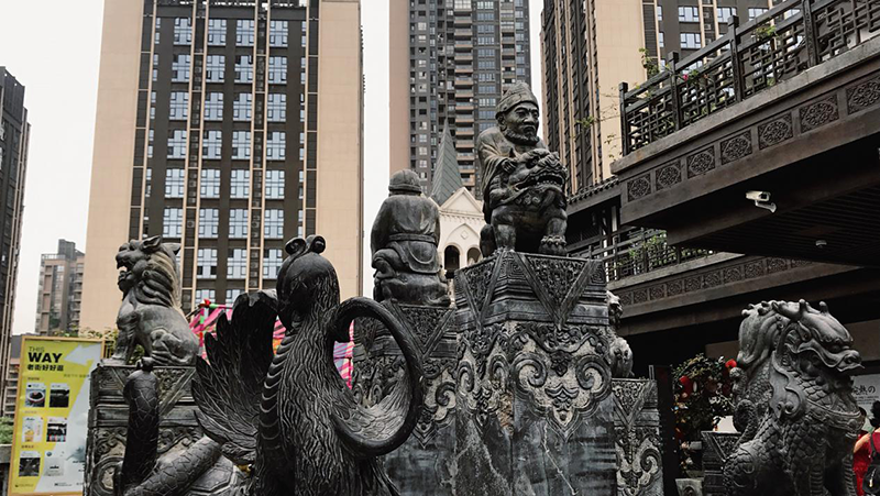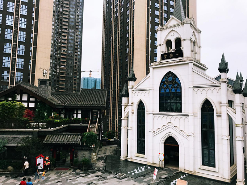 弹子石老街有着历史故事的沉淀,经过翻新后冲淡了其古味,古朴中也透着新潮。除了老街元素之外还有着其他的特色,现代感十足的IP,中式古建中藏着一栋洋人进驻后修建的教堂,由墙体和顶面的镜面构成的“星光熠熠”爱情墙,还有大众书局……都融汇在这一条老街之中。