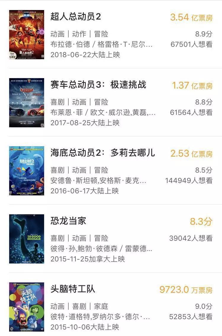 而在国内,皮克斯的电影之旅从2003年才开始,旅途走得并不顺畅。