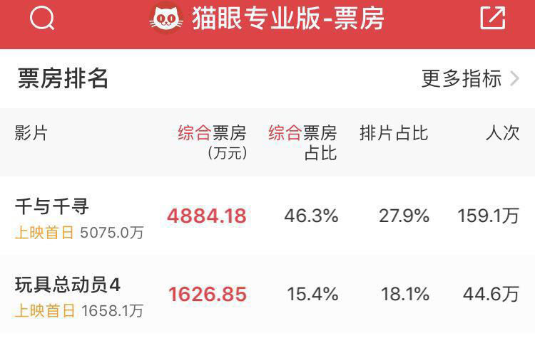但显然,《千与千寻》强压《玩具总动员4》不是具不具备情怀的问题——《玩具总动员4》系列横跨24年,皮克斯的粉丝、动画爱好者们同样视若珍宝——而是情怀覆盖面的问题。