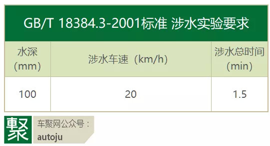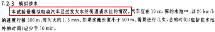 不过如果我们抠细节,不难发现以上这些其实都是针对的涉水检测,而不是浸泡检测。比如GB/T 18384.3-2001就明确说明,涉水测试是为了模拟电动汽车经过发大水的街道或者水洼的情况。