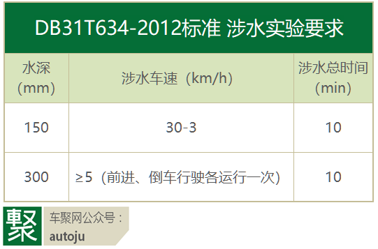 准确来说,DB31T634-2012参考的是GB/T 18384.3-2001,但条件更加苛刻,特别是涉水总时间这一项GB/T 18384.3-2001的要求太蜻蜓点水了。