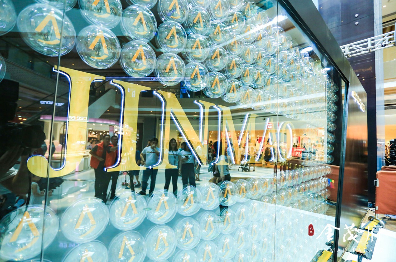 在主持人的指引下,受邀领导及嘉宾一同上台拿起剪彩绸带。随着主持人一声令下,嘉宾剪彩,幕布同步落下,龙华九方金茂品牌馆揭开神秘面纱,盛大亮相!