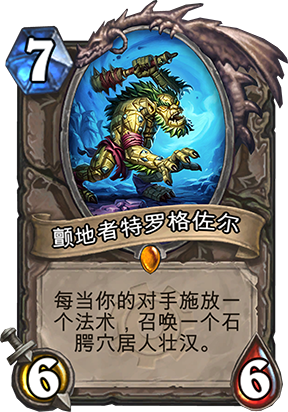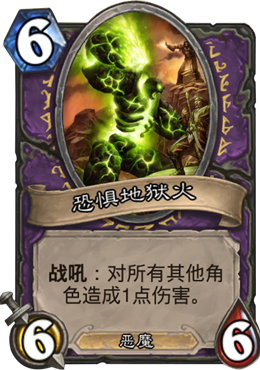 如果玩憋牌术士的话,有很多大怪可以选择,所以在对战中这张牌一直在坐冷板凳。本来暴雪是想把它作为术士的招牌随从的,但是翻遍卡册基本上快没有它的容身之处了,对战的时候它几乎都没有露脸的机会。但实际上它费用合理,身材健硕,战吼效果拔群。它能扫掉1血随从,给你在地狱烈焰之后一个补刀的机会,或者补上你抢血的时候死活打不够的那最后1点伤害。虽然它并不总是用来处理小鬼首领的小鬼爆破,适当的卡组还是能发挥这张牌真正的威力的。