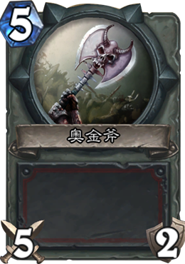 战士们已经有很多趁手的武器去选择了,所以奥金斧就在古董店躺了很久。它可能是早期《魔兽世界》死忠们眼中最具标志性的武器之一,但现在的炉石对战中实际上几乎已经看不到它了。如果放眼如今牌池中遍地5血随从的情况之下,玩家们可能会意识到5攻武器实在太魔性从而转变对它的态度。这真是一把既能用来打脸又能用来砍怪的主役武器。虽然可能看上去简单乏味,但它的可靠性和整体强度是无可匹敌的。