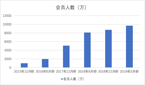 尤其是在突破1亿人次大关的时候,距离上一次2019年3月底公布的9680万人已经过去接近3个月的时间,这意味着每个月的新增会员人数仅仅维持在百万级规模。