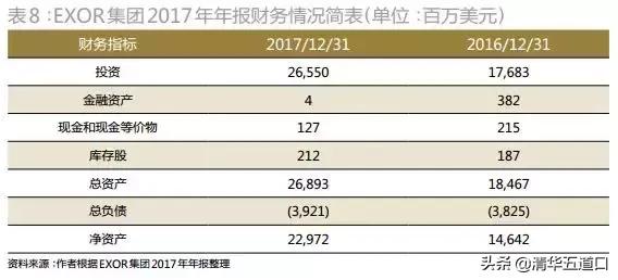 从2017年年报可以看出,新集团已经成功转型为一家投资控股公司,持有大型实业企业股权作为主要资产,净资产从2016年末的146.4亿美元大幅增长到2017年末的229.7亿美元,形成了以FCA等7家实业公司为核心的控股版图(表8、图3)。