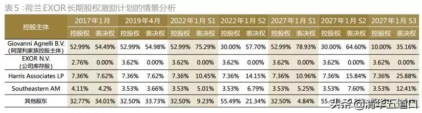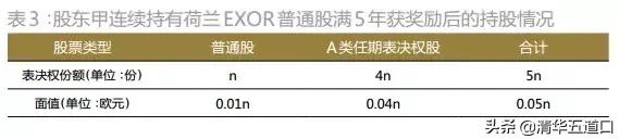 (3) 荷兰EXOR将采用长期股东奖励计划,以鼓励长期股东,给予其更多的表决权。股东连续持有荷兰EXOR普通股满5年的,每股表决权乘以5倍,如果持有10年则乘以10倍。