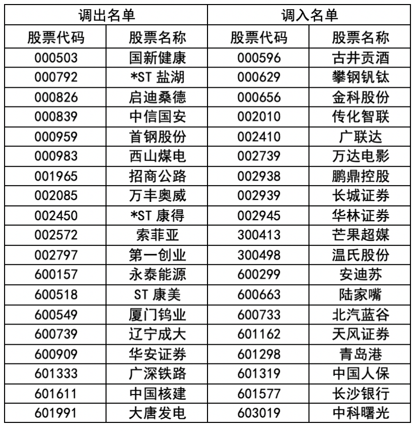 - 沪深300指数样本股调整名单: