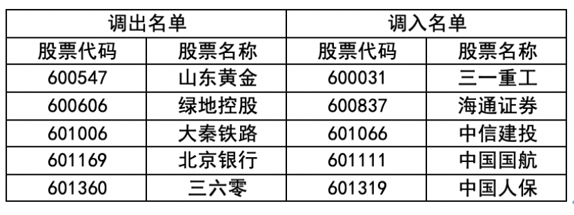 3.上证50指数样本调整名单: