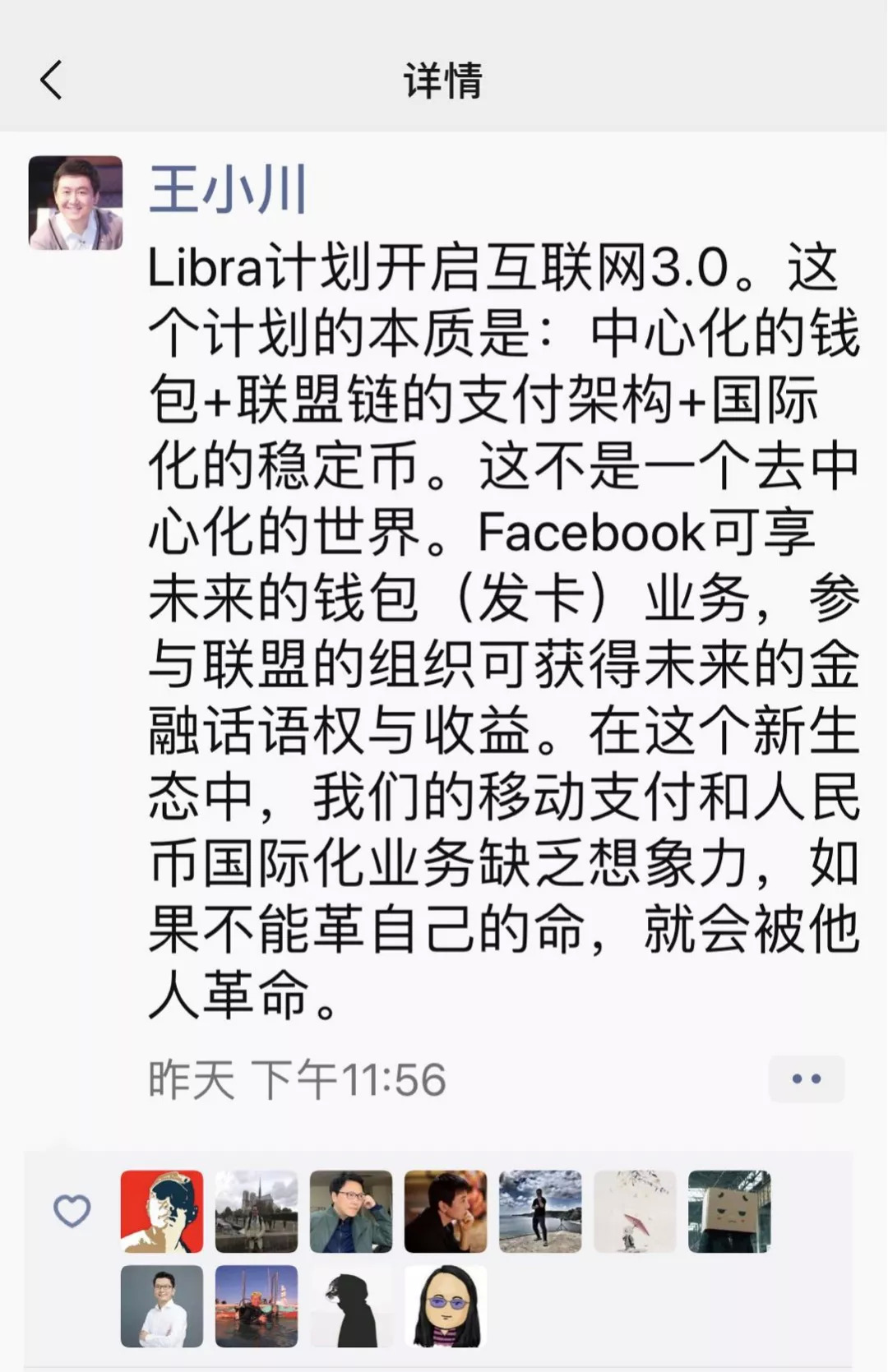 不管Libra未来将以怎样的形式发展,至少Facebook已经踹开了国家法定货币的临门一脚,无论是区块链产业还是全球金融体系,这才是最重要的事情。