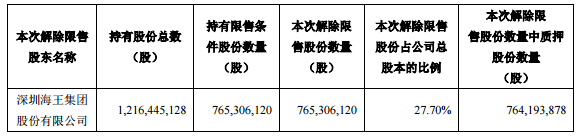 根据统计,解禁股份数量超过1亿股的上市公司合计7家,分别为海王生物(000078.SZ)、ST康美(600518.SH)、三湘印象(000863.SZ)、海伦哲(300201.SZ)、远大控股(000626.SZ)、博腾股份(300363.SZ)、置信电气(600517.SH)。