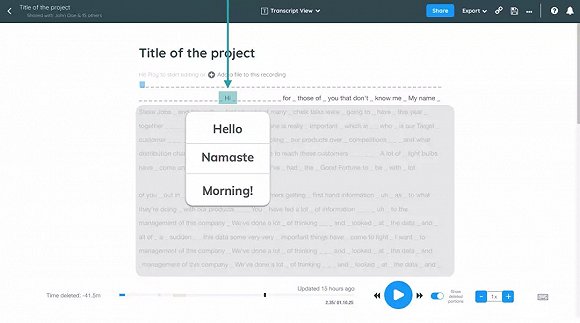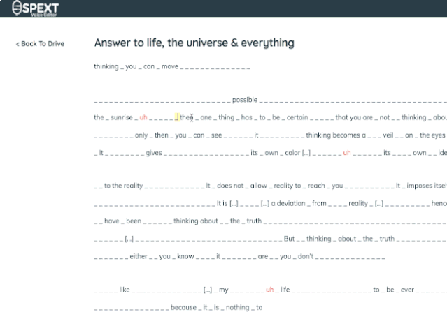 除了省时间,Spext 还能让音频编辑更 “省事”:比如,如果音频里的人发生口误,音频编辑可以直接看着 Spext 根据音频整理出的文字,直接替换文字,打出正确的词,然后 Spext 的 “声音合成器(synthetic media)” 功能,就能自动生成以那个人的声音说的、被修改过的没有口误的那句话。