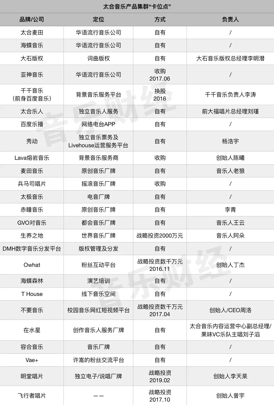 2015年12月,在与百度旗下的百度音乐合并后,太合一举成为了横跨内容生产、版权运营、在线音乐、演出活动等各环节于一体的新巨头,并由此加入了在线音乐的战局,并凭借其在传统音乐行业从内容到消费整个链条的完整性,被视为“隐形的独角兽”,彼时外界普遍认为“攻守平衡”是太合最大的优势所在。
