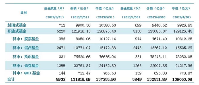 6月24日,中国基金业协会发布2019年5月公募基金市场数据。