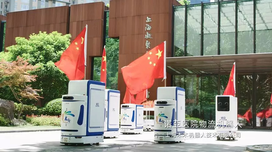 长宁企业研发的诺亚医院物流机器人、AI教育机器人携五星红旗亮相,为大家带来惊喜。