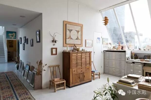 看起来像是艺术工作室的家里,非常自然地容纳了这位女士所有的生活,钟爱的事业,带有回忆的小物,相伴多年的书籍,就连建筑里的一横一竖,都极其巧妙地和她脸上的可爱笑容融合起来。她让我感到,也许不需要刻意地追求事业上的成功,个人本身与生活的交汇也能成为一部完美的作品。