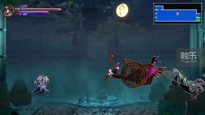 除此之外,一些流程中加入的一段“限时”关卡,这在以往的“恶魔城”类型中也很少见,算是对浸入式剧情的一种尝试。它们段落不长,但非常精致,综合体验不错,再加上双人配合要素,让玩家们仿佛梦回《废墟肖像》。