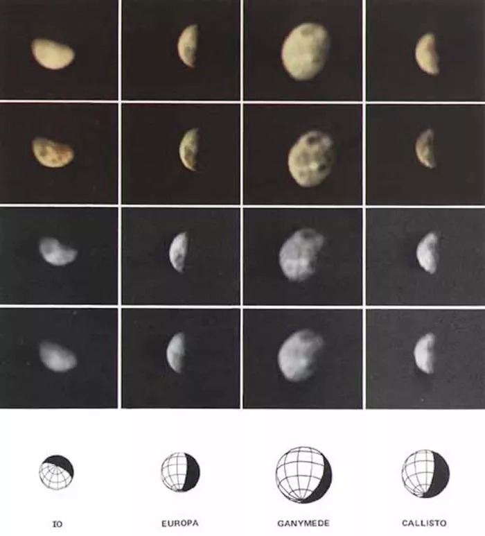 从探测器拍摄的第一批木卫一照片中,我们找不到这颗卫星拥有大量火山的迹象。以下是先驱者11号拍摄的照片。先驱者11号于1973年发射,目的是研究木星和土星(位于左侧)之间的小行星带。该探测器帮助科学家估算出木卫一的质量,从而可以确定这颗卫星主要由岩石而非冰构成。