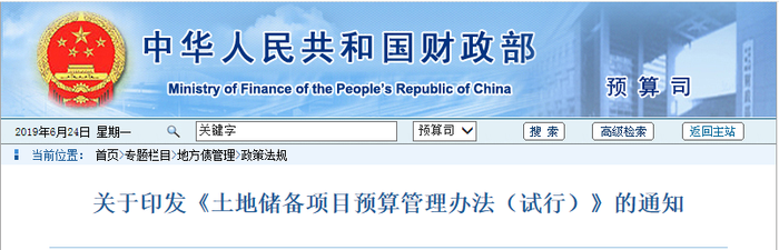 近日,财政部和自然资源部发布《土地储备项目预算管理办法(试行)》通知(下称“通知”),对包括北京、天津、河北、河南、山东(含青岛)、浙江(含宁波)、厦门在内的7省(市),在土地储备领域按照项目实行全生命周期预算管理。