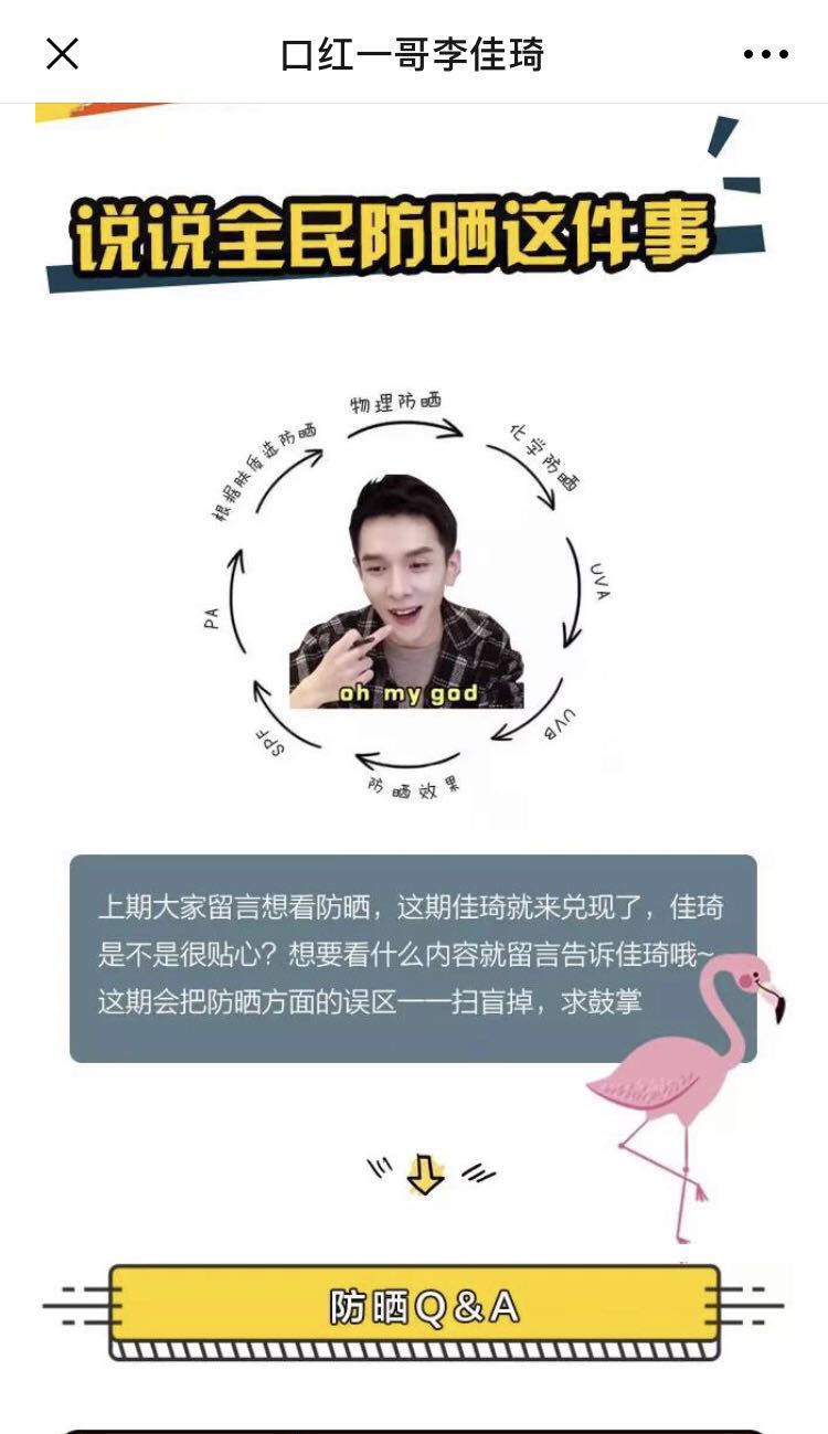 一向以视频内容为主的他,5月16日在微信公众号“口红一哥李佳琦”上正式推送了第一篇内容,里面有美妆领域近一周的热门事件回顾、好物推荐,以及与本期主要产品相关的知识。例如推介美发产品时,顺带讲了发型和脸型的搭配问题。总体看来仍没有脱离带货的路线。