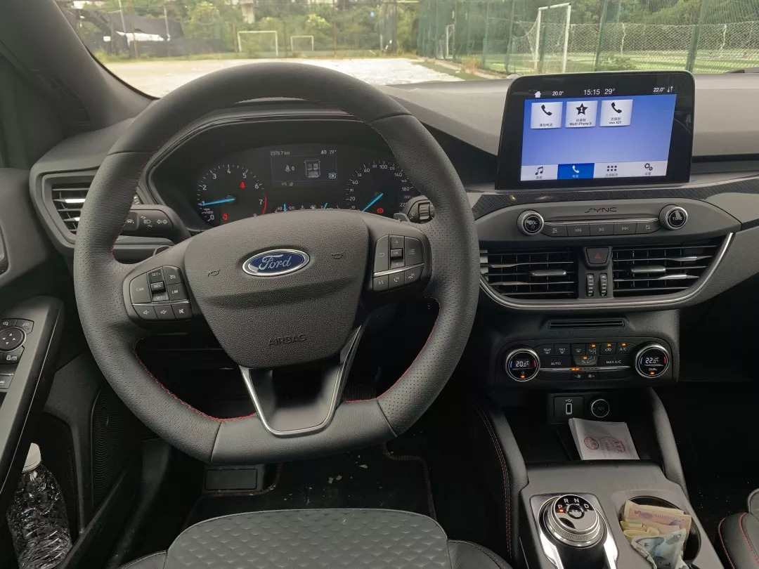 对比我所试驾的新福克斯ST-Line,车内同样采用了大量的搪塑材质,包括前IP台顶部和立面都是,中间则是仿碳纤维的饰板。车门的上半部分、手臂能接触到的地方都是软材质,甚至一个内侧面都是皮革包裹。另外,新福克斯虽然中控台的下半部分是硬塑料,但是靠近腿部的地方也采用了皮革包裹,增加柔软度,以免膝盖磕碰。
