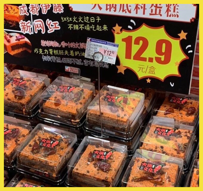 于是,在四川的土地上诞生了红油味儿的一切:辣味蛋糕▼