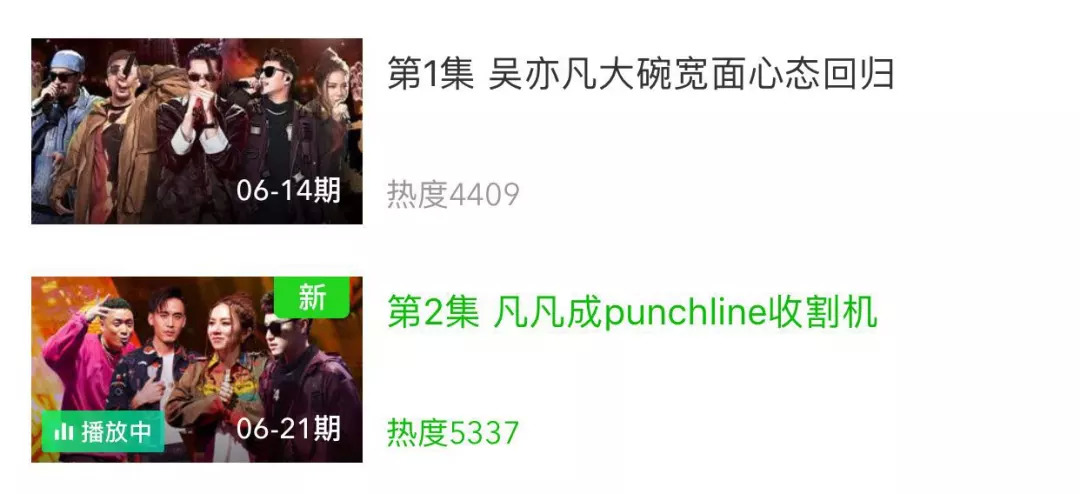 两期节目的标题也是耐人寻味,第一期是《吴亦凡大碗宽面心态回归》,第二期是《凡凡成punchline收割机》。每期名字不是吴亦凡就是凡凡,这一季的优秀Rapper是不配拥有标题吗?节目又不止吴亦凡粉丝看,这样满心流量的媚态让人难接受。
