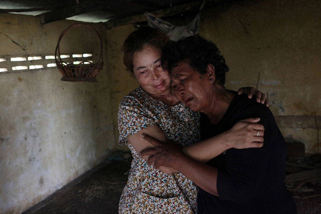 右边:Sokneang,33岁。Sokneang曾是柬埔寨Preah Vihear地区的一家歌厅歌手。一天一名妇女趁她看电视时朝她脸上泼了硫酸。该妇女因丈夫经常光顾歌厅,而心生愤怒。在柬埔寨硫酸幸存者组织的帮助下,Sokneang现在是一名裁缝。