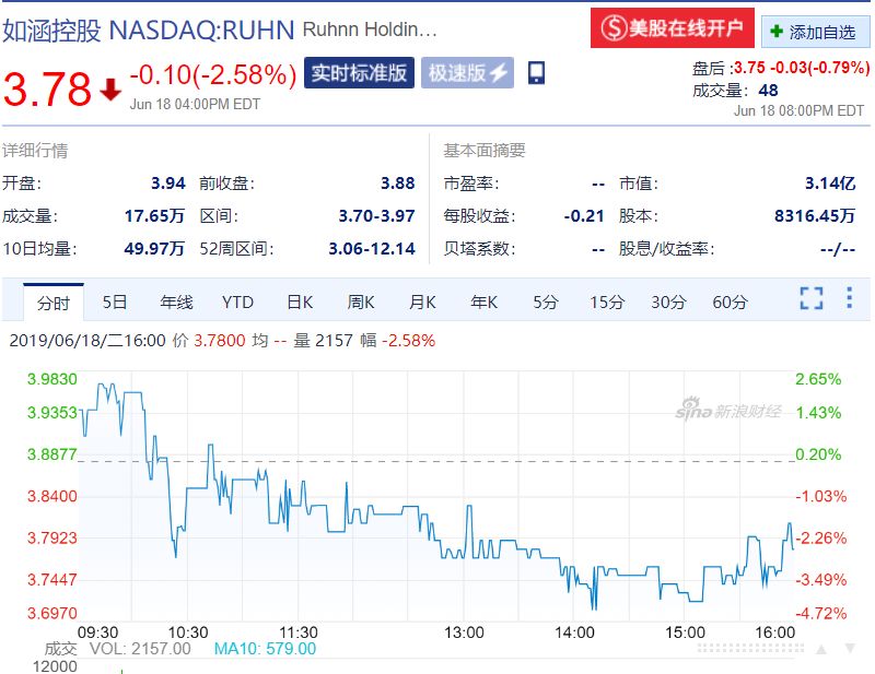 6月13日盘前,国内网红电商第一股如涵控股(RUHN.US)对外发布了上市后2019财年(2018年3月31日-2019年3月31日)第四季度以及全年未经审计的财报,盘后大涨23.01%。截止6月19日,如涵的盘后股价为3.78美元,市值为3.14亿美元。2019年4月3日,也就是两个月前如涵在纳斯达克上市,在IPO当日即遭破发,从每股12.5美元跌至最低每股3.06美元,一度跌超75%。当时大半的目光集中在张大奕身上,因为如涵过半的营收都来自她个人名下的店铺,但“网红电商第一股”的光环,华尔街似乎并不买账。连续盈亏的如涵将会做出什么改变?海豚分析师将通过解读它的财报及相关数据,也许能回答网红电商面临的挑战与机遇。