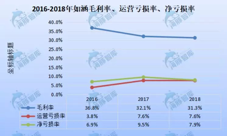 2018年运营利润亏损率和净利润亏损率虽然同比有所下降,但是效果甚微。行业内人士指出,如涵会付给头部效应明星很高的分成,而自己培养新网红的成本又太高,那么如涵巨额的运营成本,也许能解释如涵连年盈亏的原因。