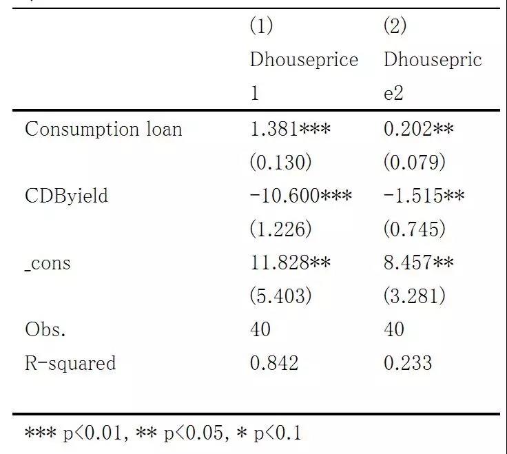 在2008-2013年的高货币投放和2015年的信贷资源可获性不均匀的情况下,一线城市和二、三线城市的房价涨幅走势差异显著。例如,表1的回归结果也显示,一线城市房价增速与信贷(个人中长期消费贷款同比)和利率环境(国开债收益率)高度相关,而二线城市房价增速与这两者的相关性被拒绝。
