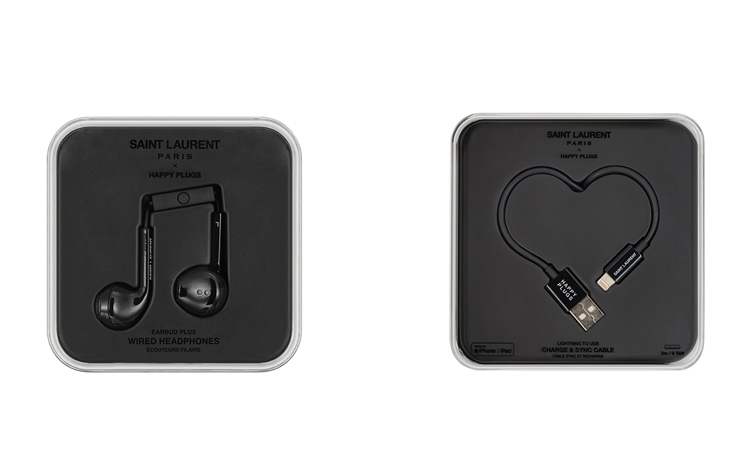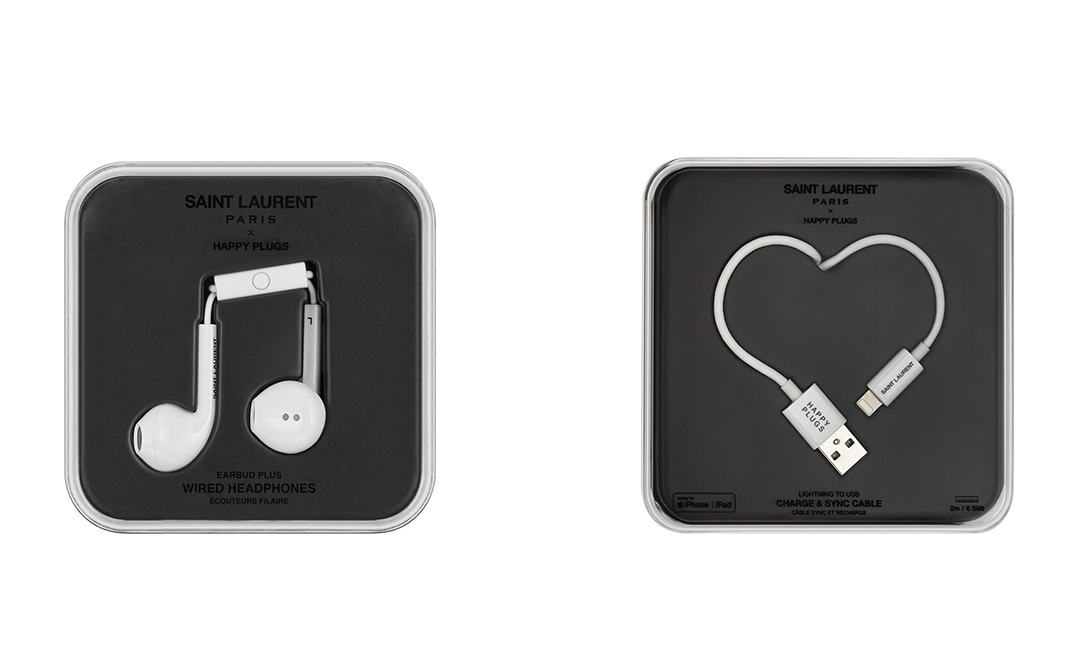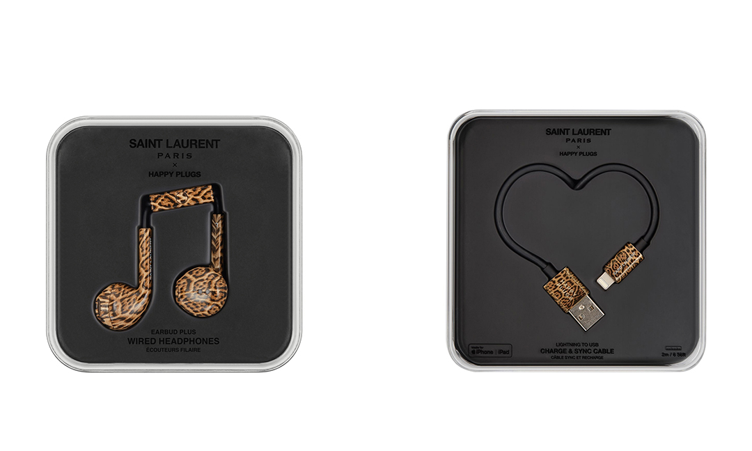 在与Happy Plugs的合作系列中,联名双方推出了一系列有线耳机和充电线。除了Anthony Vaccarello在秀场上常用的凌厉黑白两色外,洋溢着野性的豹纹和斑马纹也被绘在其上,彰显了Saint Laurent Paris一贯的锋利态度。