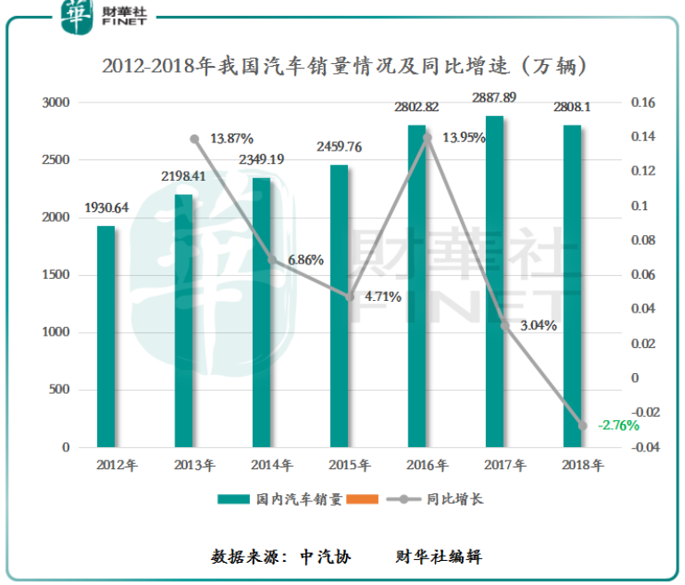 汽车零配件行业方面,近年来,随着国内整车市场销量增速趋于放缓(如下图),汽车零部件市场未来增量面临较大压力,从事汽车零部件的企业销售收入增速自然不高。与此同时,汽车零部件行业利润面临的挑战会更大,这主要是受到下游整车市场价格变化、上游原材料价格波动及行业竞争加剧的影响。