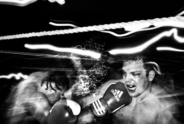 第一次听说“星期五夜战”(Friday Night Throwdown)这个活动的时候,摄影师Devin Yalkin就开始筹划着拍摄《The Old One Two》摄影系列。“星期五夜战”神秘又刺激,它的一切都暗中行事,每隔数月就不定期地在纽约城里举行拳赛,有时候地点定在空置的仓库,有时候则在工厂的大楼。 这个令人肾上腺素飙升的非法拳赛吸引着各种观众,也吸引着从资深海军陆战队成员到男模的各路参赛者。