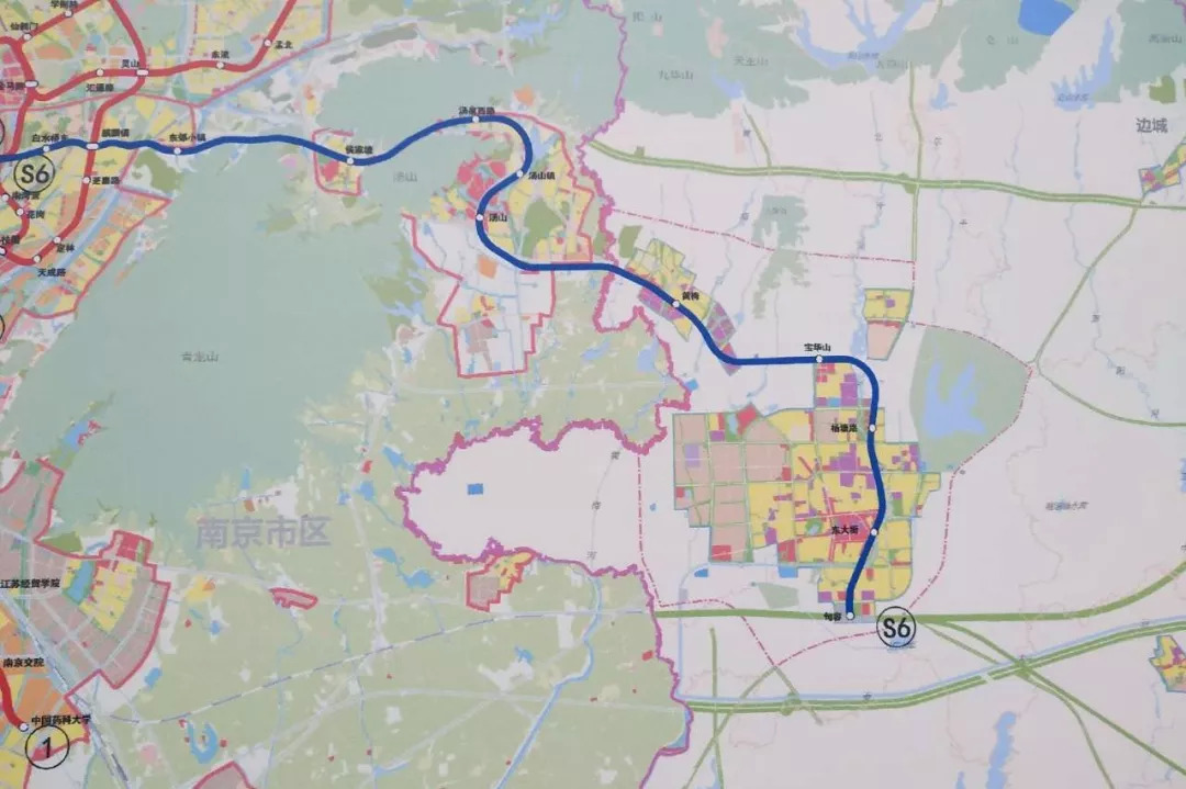 地铁S6号线途经栖霞区、江宁区和句容市,线路西起马群站,向东经麒麟新城,至汤泉西路站后进入汤山新城,由汤山站折向东南,至宝华山站后转南进入句容城区,南至南沿江高铁句容站。待宁句城际建成后,可与现有地铁2号线以及规划中的8号线、12号线实现换乘。