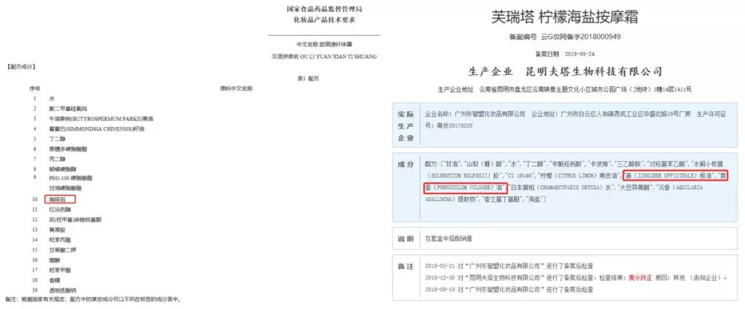 根据芙瑞塔柠檬海盐按摩霜非特化妆品备案成分表,另一位不愿具名的业内工程师表示,该产品中所含有的“姜(ZINGIBER OFFICINALE)根油”“茴香(FOENICULUM VULGARE)油”属于辛香料,涂在皮肤上可能会有发热的感觉,从而误导消费者以为是体内脂肪在燃烧。