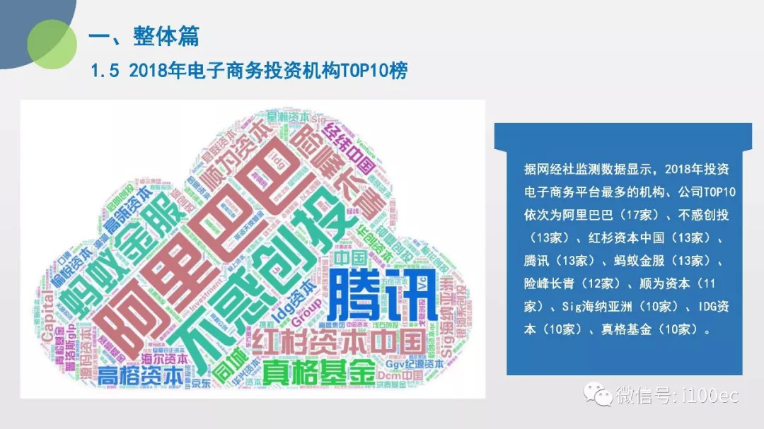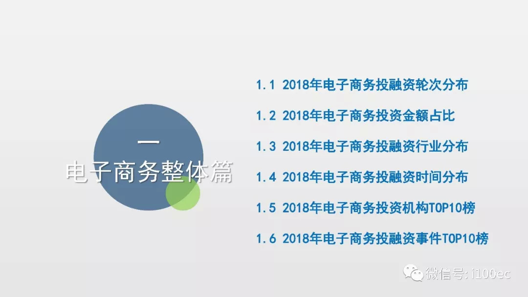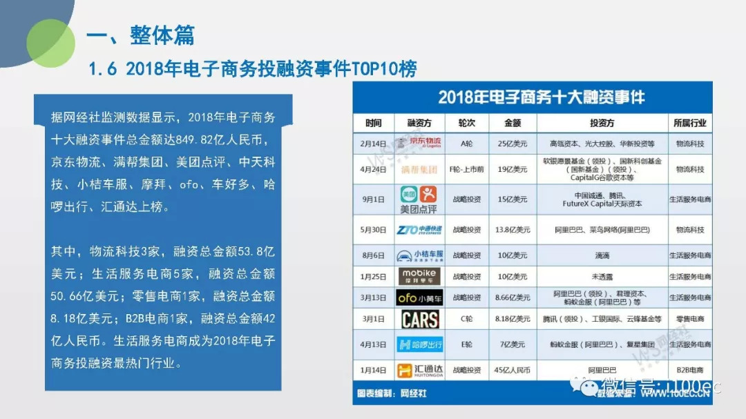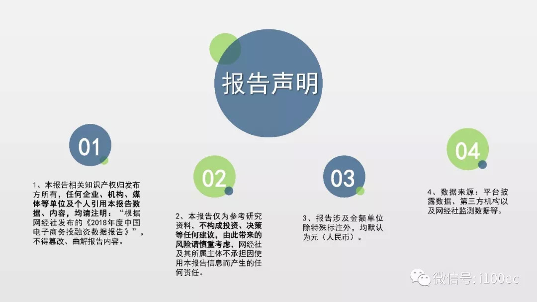 以下为网经社-电子商务研究中心为您带来的《2018年度中国电子商务投融资市场数据监测报告》简版PPT: