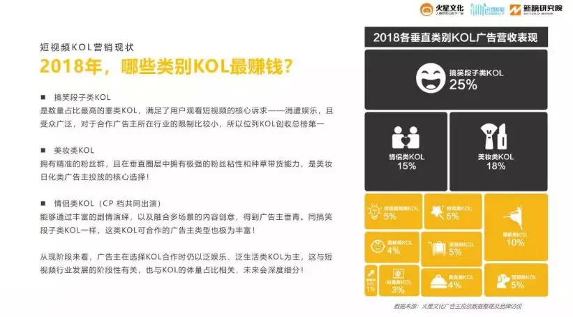 同时,从《2019短视频内容营销趋势白皮书》中能够看到,虽然短视频中的广告投放形式正在变得更加多元化,但是在针对KOL的广告投放中,情侣类KOL则是牢牢地在广告营销方面占据优势地位。情侣类KOL能够通过情侣之间的互动来演绎丰富的剧情,将产品更和谐地融入内容中,而情侣之间产生的撒糖互动或者丰富笑料也会使用户更容易接受这种“恰饭”广告的存在。