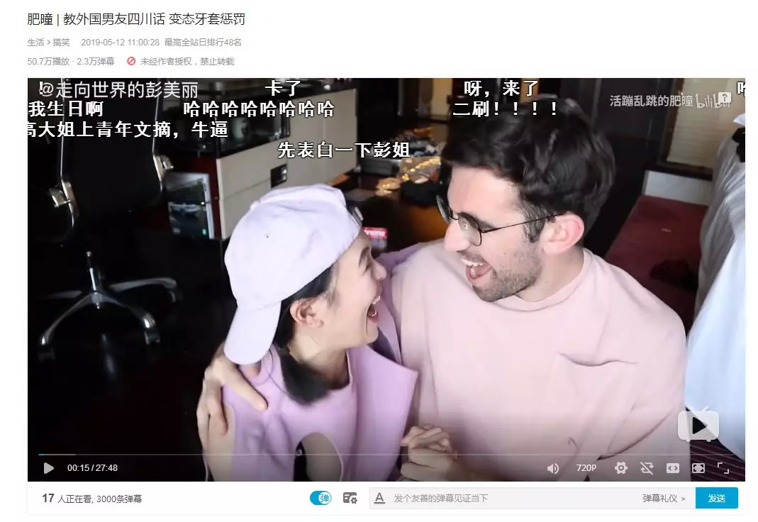 美妆区头部UP主“活蹦乱跳的肥曈”(彭瞳瞳)在与UP主“高佑思不是皮克”(高佑思)成为情侣后,在不间断推出原有的美妆视频内容的期间,也接连推出“肥曈丨日本vlog 快乐建立在男友的痛苦之上”、“肥曈丨教外国男友四川话 变态牙套惩罚”等情侣向视频内容。