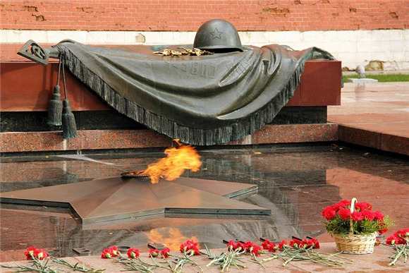 俄罗斯的无名英雄墓位于莫斯科亚历山大公园的克里姆林宫墙。在1941年的莫斯科保卫战中死去的无名战士遗体最初埋葬在泽列诺格勒的公墓,而后在1966年被迁移到了现在的位置。暗红色的斑岩墓碑上装饰着一个士兵头盔和一面旗帜的青铜雕塑。