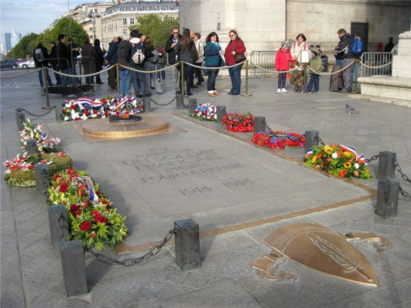 就在无名战士的遗体被埋葬至威斯敏斯特大教堂的那一天,另一具遗体在巴黎的凯旋门下葬。墓碑上的写着是:“这里是一个为国捐躯的法国士兵,1914年-1918年”。
