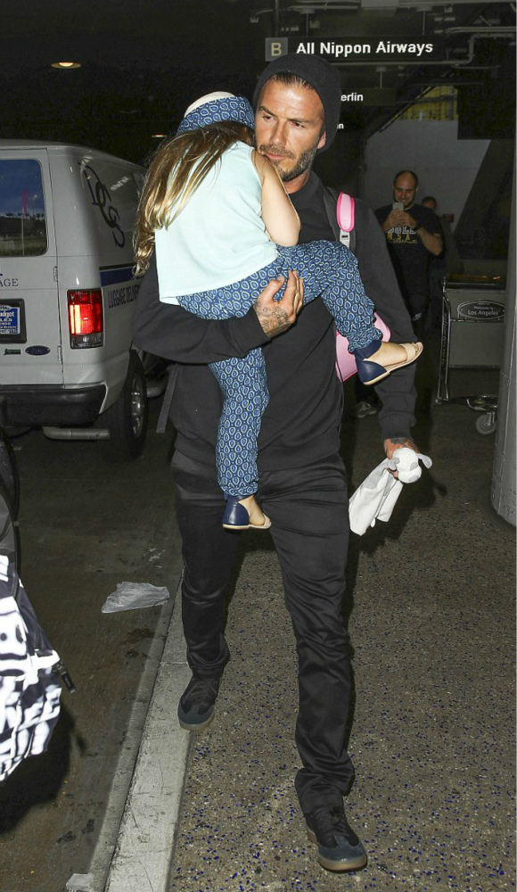 小七永远是贝克汉姆的掌上明珠,爸爸的小女儿。小贝一家周日抵达洛杉矶国际机场,在40岁的父亲保护下,小七牵着爸爸的手走出机场。