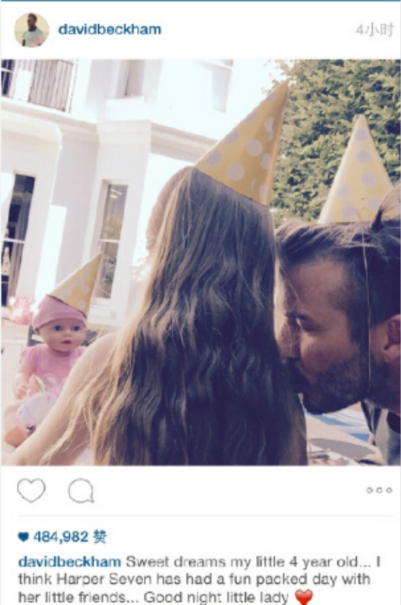 当天的早些时候,小贝更是晒出了另一张关于小女儿的照片,照片中小七安然熟睡,“可能我最喜欢在这个时候给小七拍照了……与这个惊人的小姑娘度过了非常美好的4年……生日快乐……”