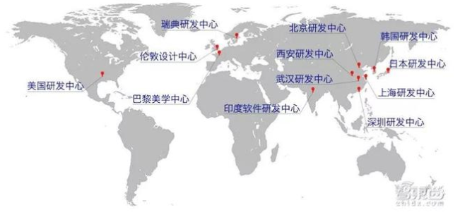 华为在通信领域有30年的积累,在法国(美学)、日本(材料)、俄罗斯(算法)、瑞典(工程)、美国(工艺)、乌克兰(散热)等地成立研究所。