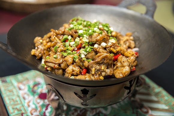 聊了半个多小时以后,王长田请来的湖南厨师开始上菜,一共六道菜,口味虾、鸡汁脆笋、干锅牛蛙、清炒小白菜、红烧鲳鱼、小炒肉,很快上齐,没有酒,只有一壶普洱茶,在王长田的办公室经常看得到这种茶。