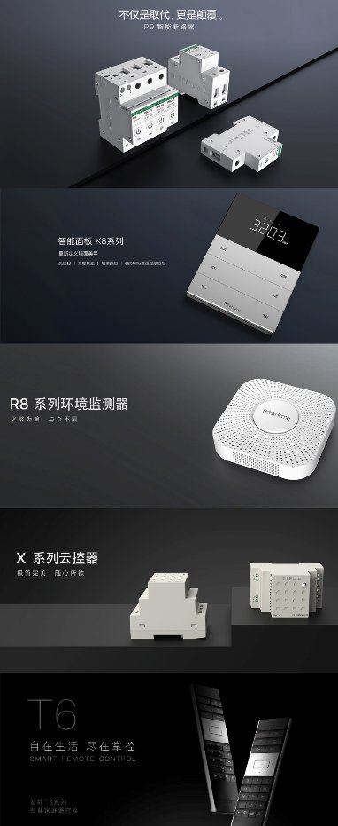 智轩以P、K、R、X、T等五大产品系列为依托,打造智能光环境、智能舒适、智能安防、影音娱乐四大总线分体产品解决方案体系。