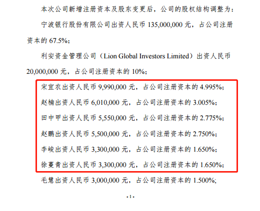 在拥有自己的亲信后,宋宜农在永赢基金也愈发有了话语权,2014年8月,永赢基金进行了股权激励改革,共有28名员工股东合计出资4500万元,占公司注册资本的22.5%,其中总经理宋宜农出资999万元,占公司注册资本的 4.995%,赵楠、田中甲、徐蔓青等人也出现在股权激励名单中。
